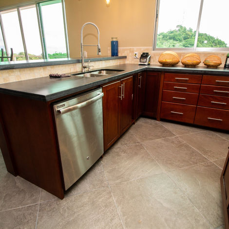 En este proyecto se llevaron a cabo los muebles de cocina, closet madera Guanacaste y puertas en Cedro, además sobres de granito exótico.